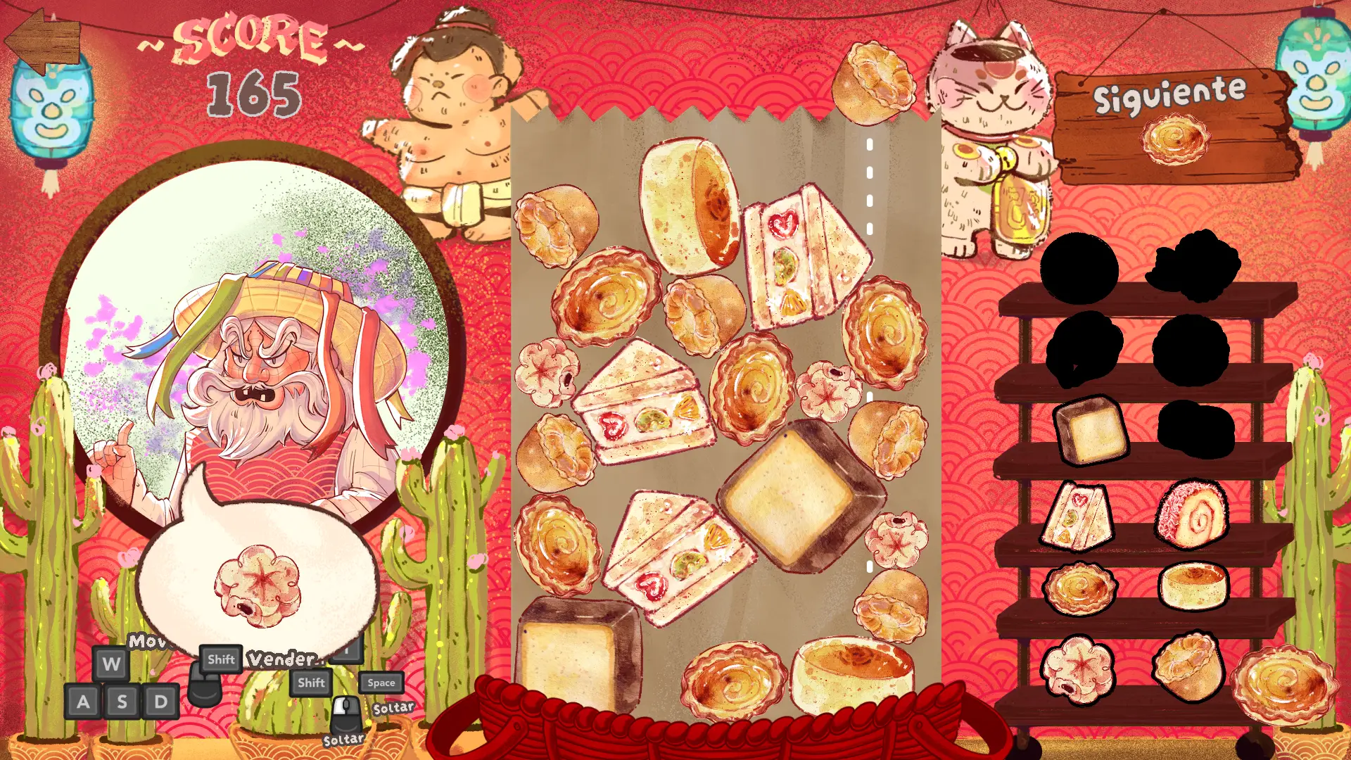 Los controles se sienten bien y responsivos (aunque realmente no necesitamos mucho más) y las físicas de los panes son funcionales. A ratos parecen pelotitas de goma por cómo se comportan; aunque no van rebotando por toda el área de juego, tampoco tienen el golpe seco que haría un pan real. Es lo suficientemente servicial para empujar ligeramente la pieza con la que choca y tener la posibilidad de crear cadenas así.